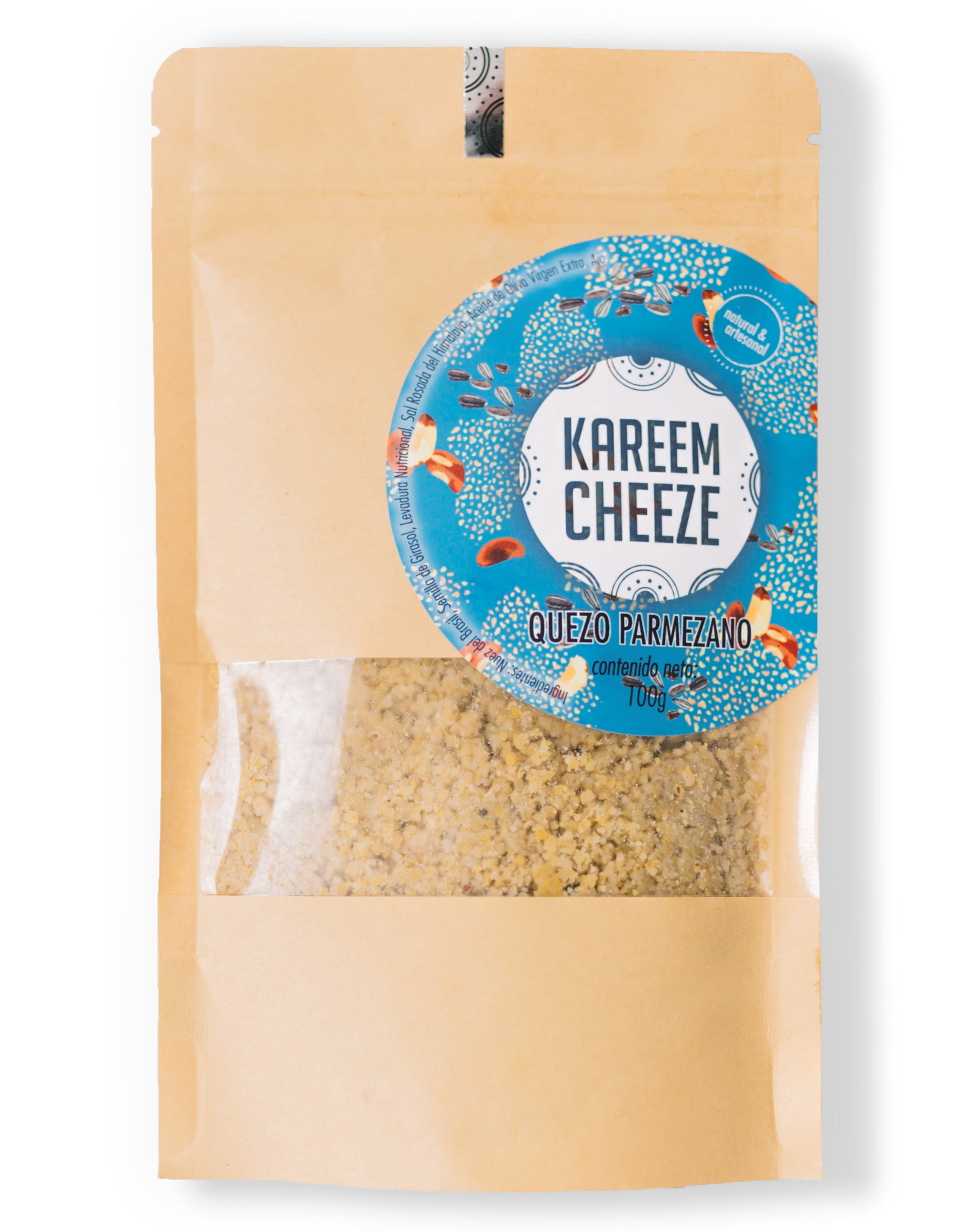 Ingredientes: Nuez del brasil, semilla de girasol, levadura nutricional, sal rosada del himalaya, aceite de oliva virgen extra, ajo.
